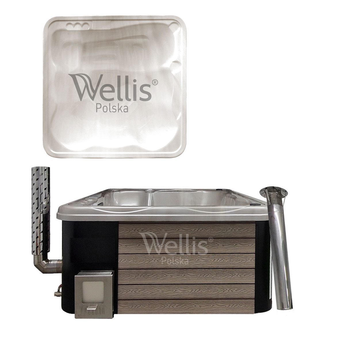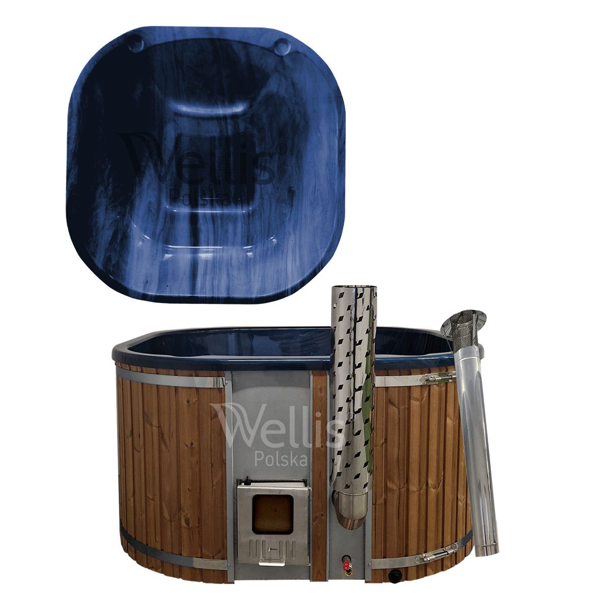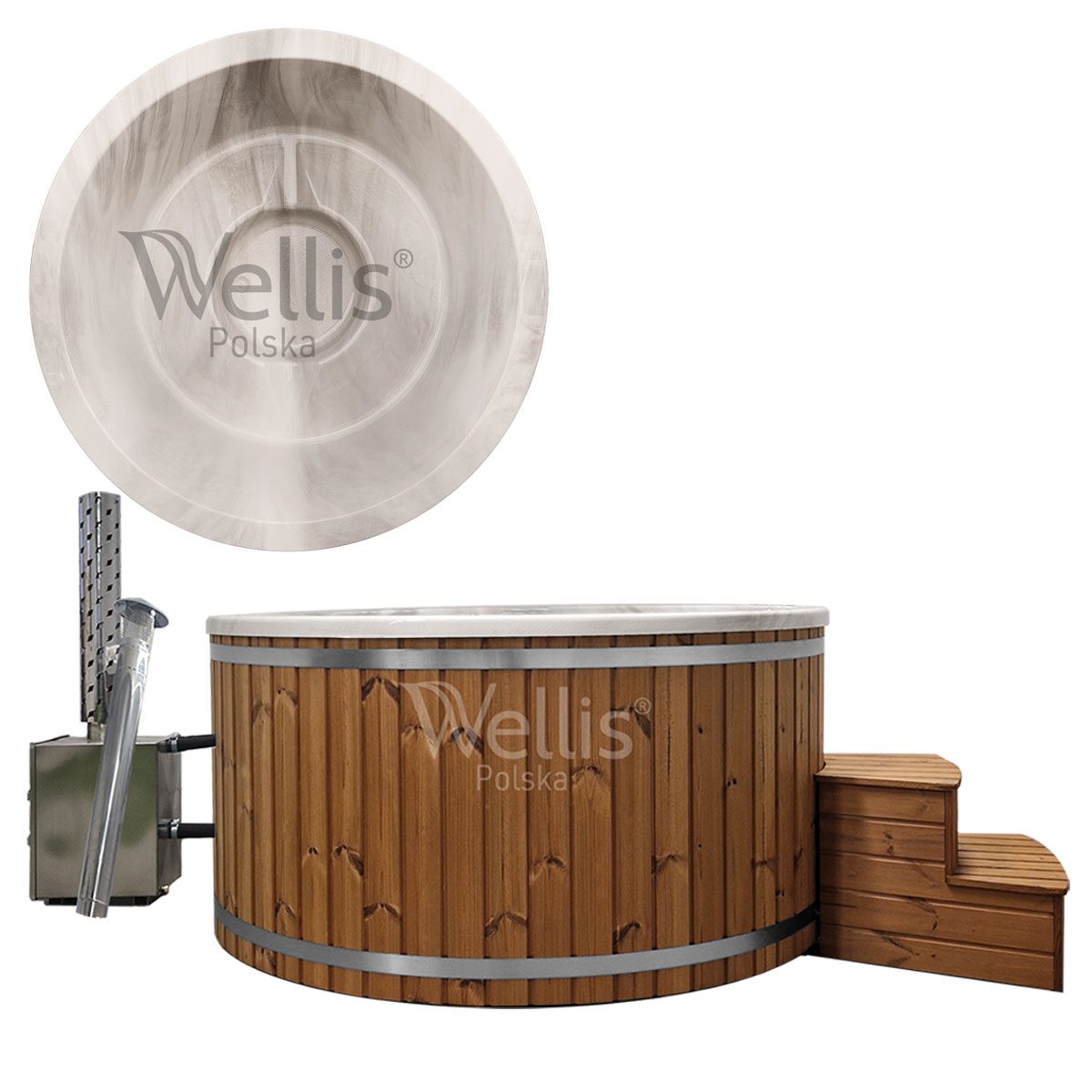 | Ogrzewanie | Piec ze stali nierdzewnej S304 36 kW opalany drewnem lub grzałka elektryczna 3 kW z pompą cyrkulacyjną i termostatem |