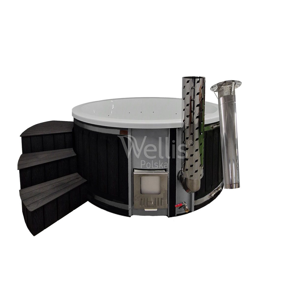 | Ogrzewanie | Piec ze stali nierdzewnej S304 36 kW opalany drewnem lub grzałka elektryczna 3 kW z pompą cyrkulacyjną i termostatem |